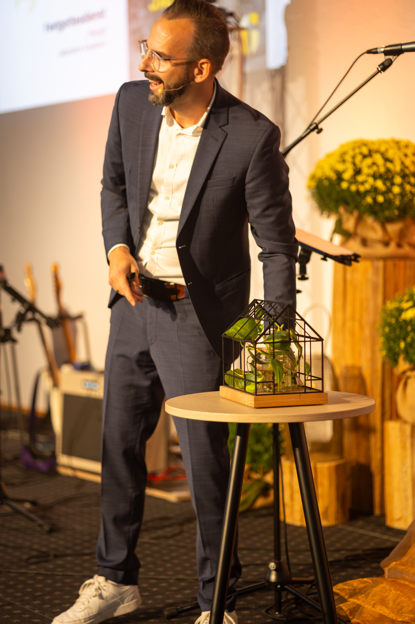Am Sonntag zog es viele Besucherinnen und Besucher zum Festgottesdienst mit Orchester, moderner Lobpreismusik und Band. In seiner Predigt griff Pastor Sebastian Kapteina ein Bild aus dem Epheserbrief des Paulus auf: Paulus beschreibt Kirche nicht als starre Institution, sondern eher wie einen lebendigen Organismus das einem „Gewächshaus“ gleicht. Auch in den nächsten 25 Jahren geht es nicht um beliebiges Wachstum, sondern mit einem klaren Ziel: Christus als Vorbild und Mitte des Glaubens. Im Anschluss wurde bei einem üppigen Buffet, mit selbstgebackenen Kuchen & Torten und erneut mit Spielangeboten für Kinder, weitergefeiert.