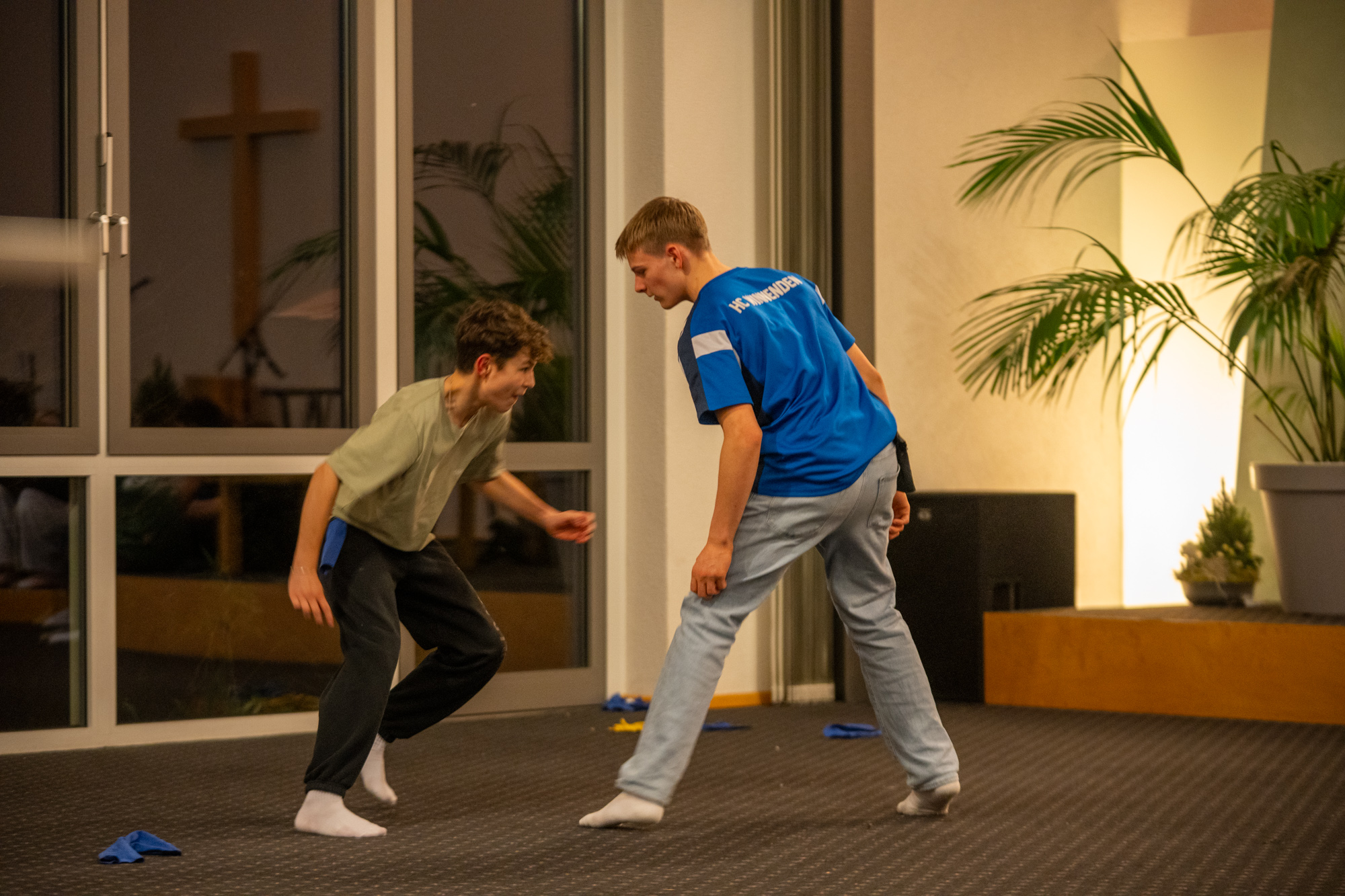 Der Gemeindesaal verwandelte sich pünktlich zum Auftakt der Los Wochos in eine Sportarena. Egal ob Paulaner-Spiel, Zombie-Ball, Volleyball oder Spikeball, die Energie ging nie aus und die Deckenlampen lebten gefährlich.